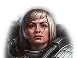 Сестра-настоятельница, обладающая выдающимся мастерством. С юных лет всецело посвящала себя благочестивым обязанностям, так как нашла своё призвание в сражениях во имя Императора, ещё будучи ученицей Схолы Прогениум. Относительно недавно варп-шторм помешал ей прибыть на последнее поле битвы, из-за чего она винит себя, что не смогла исполнить волю Императора. Считает это величайшим позором, поэтому с особой фанатичностью ищет искупления в любом бою, где участвует её Орден, а значит — и её болтер с танком.