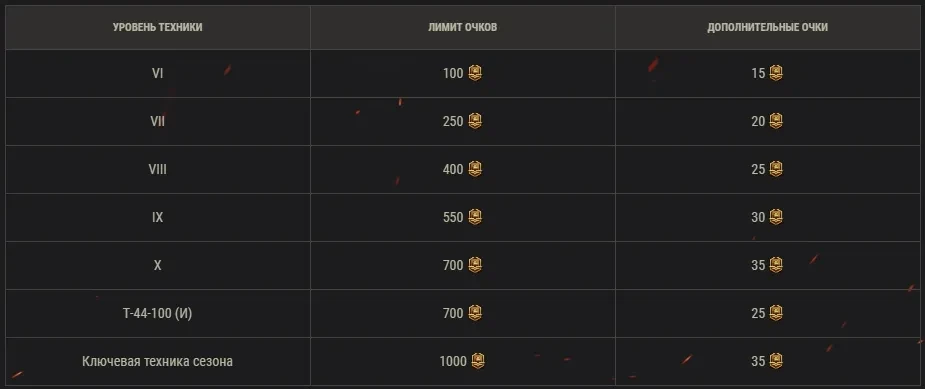 Лимит очков у этих машин увеличен до 1000. Они также смогут зарабатывать очки Боевого пропуска в Случайных и Ранговых боях по следующим правилам: (см. скрин 3).
