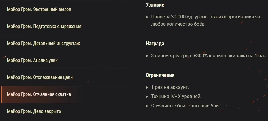 ** Боевые задачи доступны для выполнения только после введения специального кода. Время действия боевых задач — с 29 марта 09:00 (МСК) по 5 апреля 08:30 (МСК).