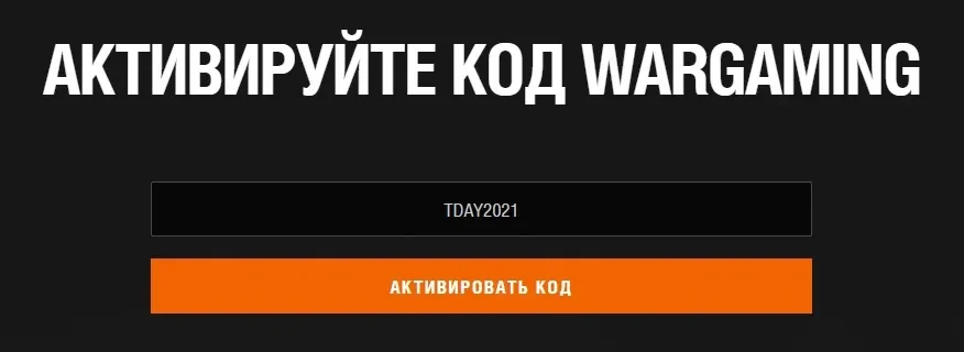 Предустановленный ввод кода: https://ru.wargaming.net/shop/redeem/?bonus_mode=TDAY.. (нужно войти в аккаунт)