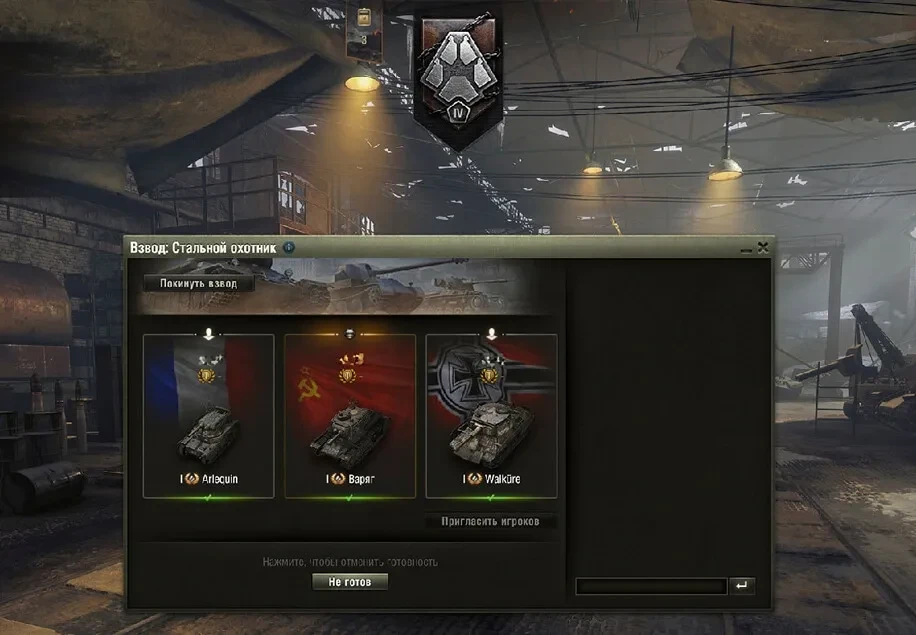 Создайте взвод для игры в режиме. Собирайте команду из трёх игроков, выбирайте технику и врывайтесь на поле боя!