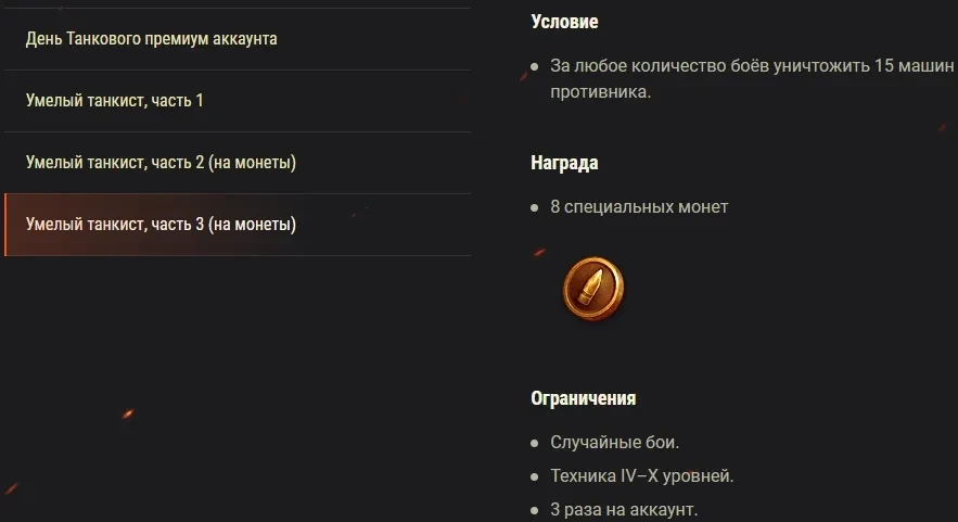 * Награды за выполнение боевых задач суммируются при соблюдении всех условий и ограничений.