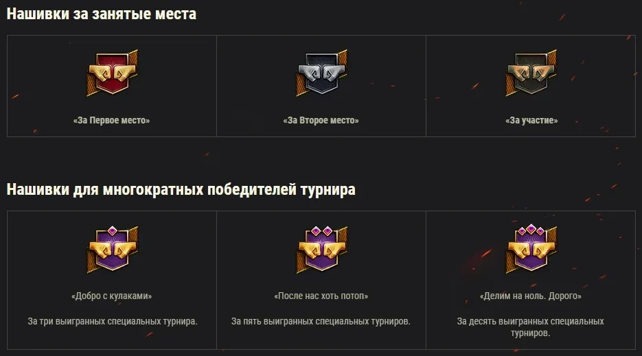 - Нашивки для многократных победителей турнира.