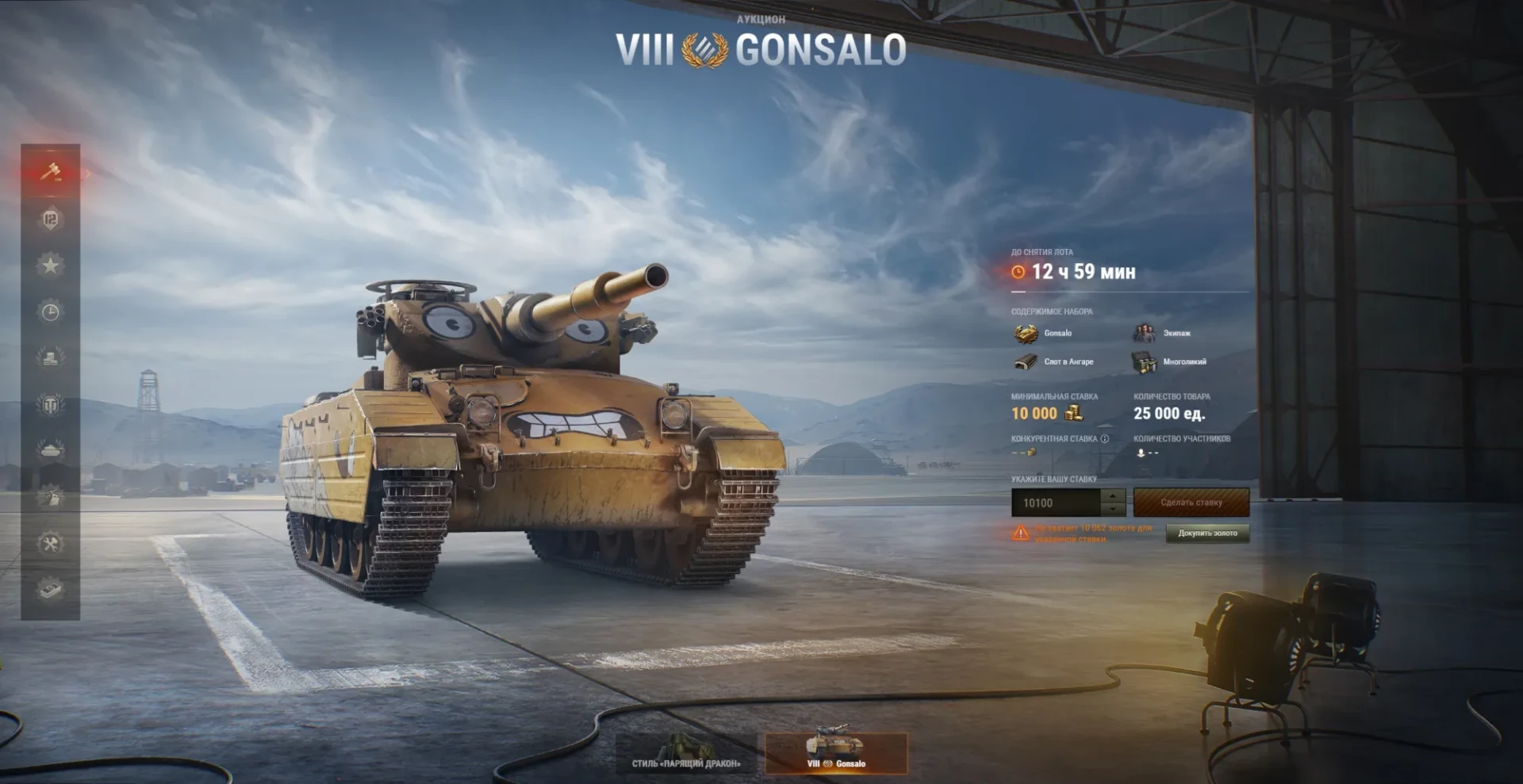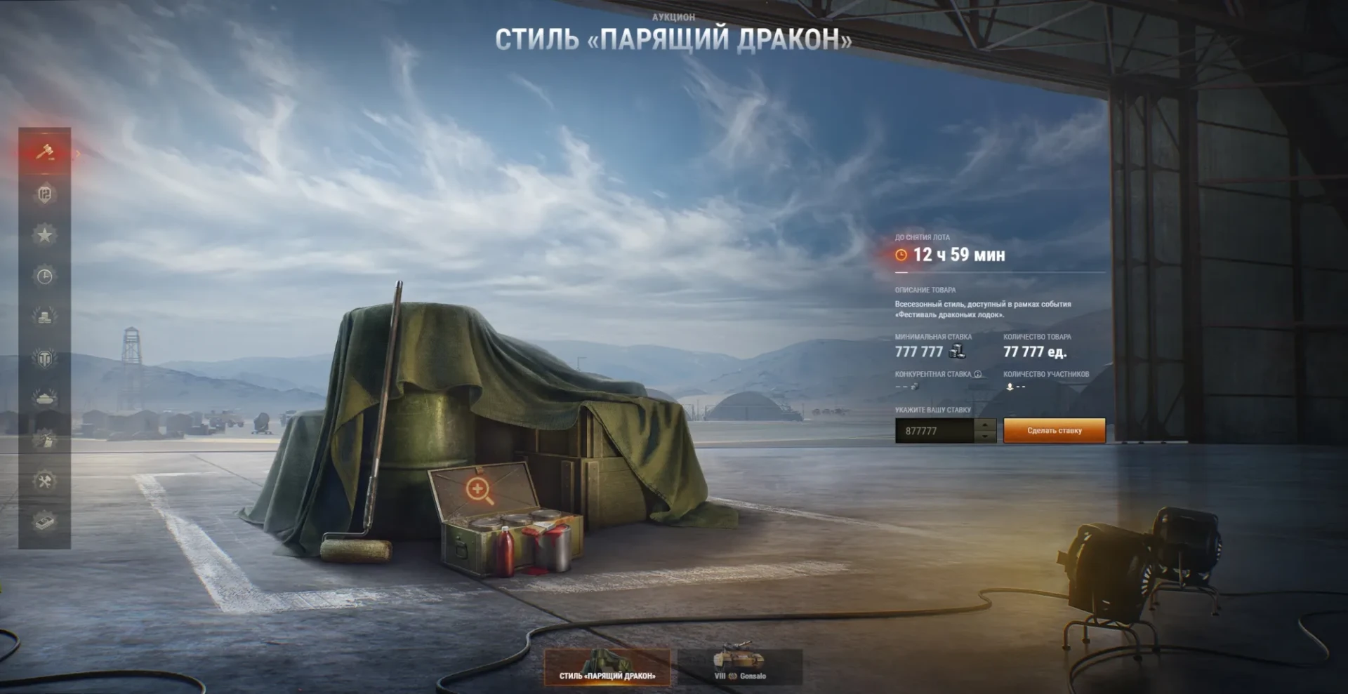 Летний Аукцион WOT 2022 (последний 4 день): Gonsalo (Великобритания, ТТ-8, прем) // 2D-стиль «Парящий дракон». 2 лота сразу.