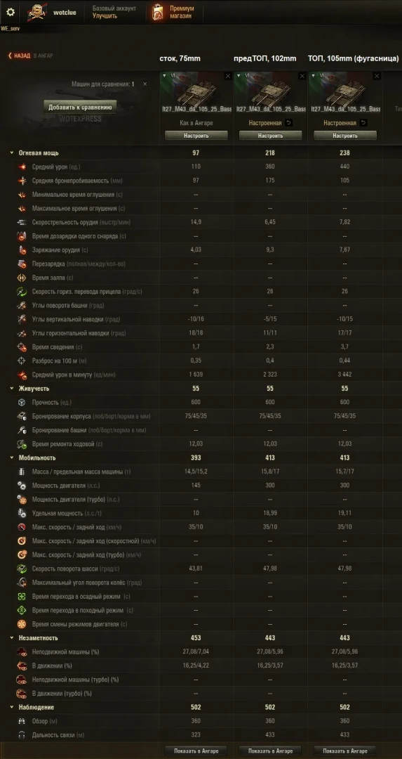 У данной ПТ четыре орудия на выбор и все цикличные. ТОП орудие фугасница. ТТХ и внешний вид перед вами.