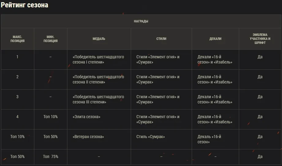 ** Клановую награду получат игроки, состоящие в клане-призёре на момент окончания сезона 30 июня 05:59 (МСК) и сыгравшие 5 и более боёв на Глобальной карте в 16-м сезоне.