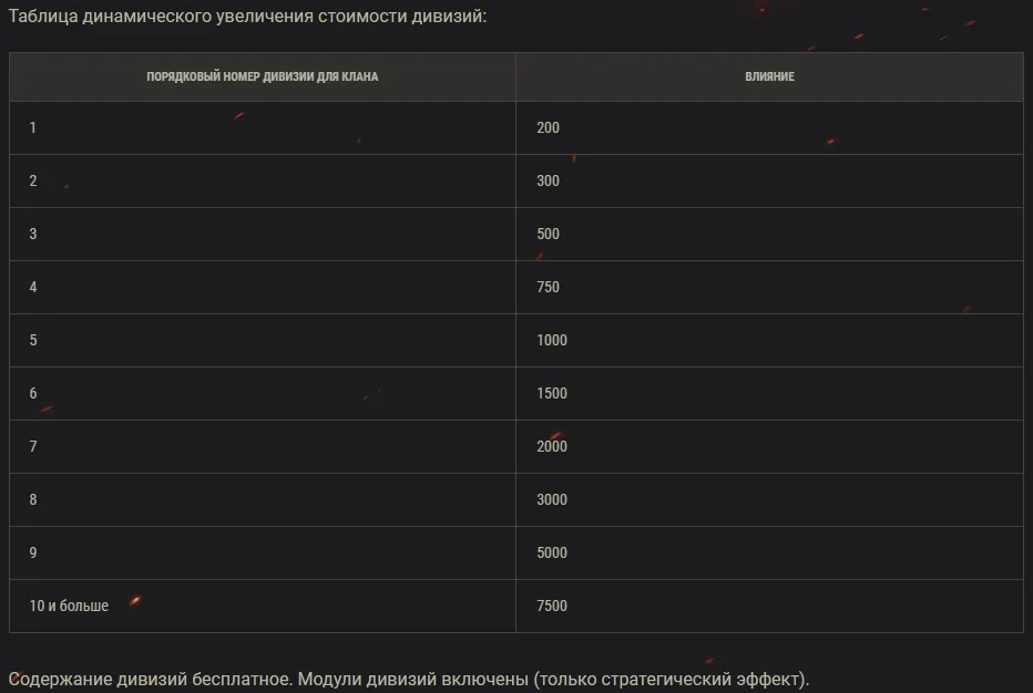 Содержание дивизий бесплатное. Модули дивизий включены (только стратегический эффект).