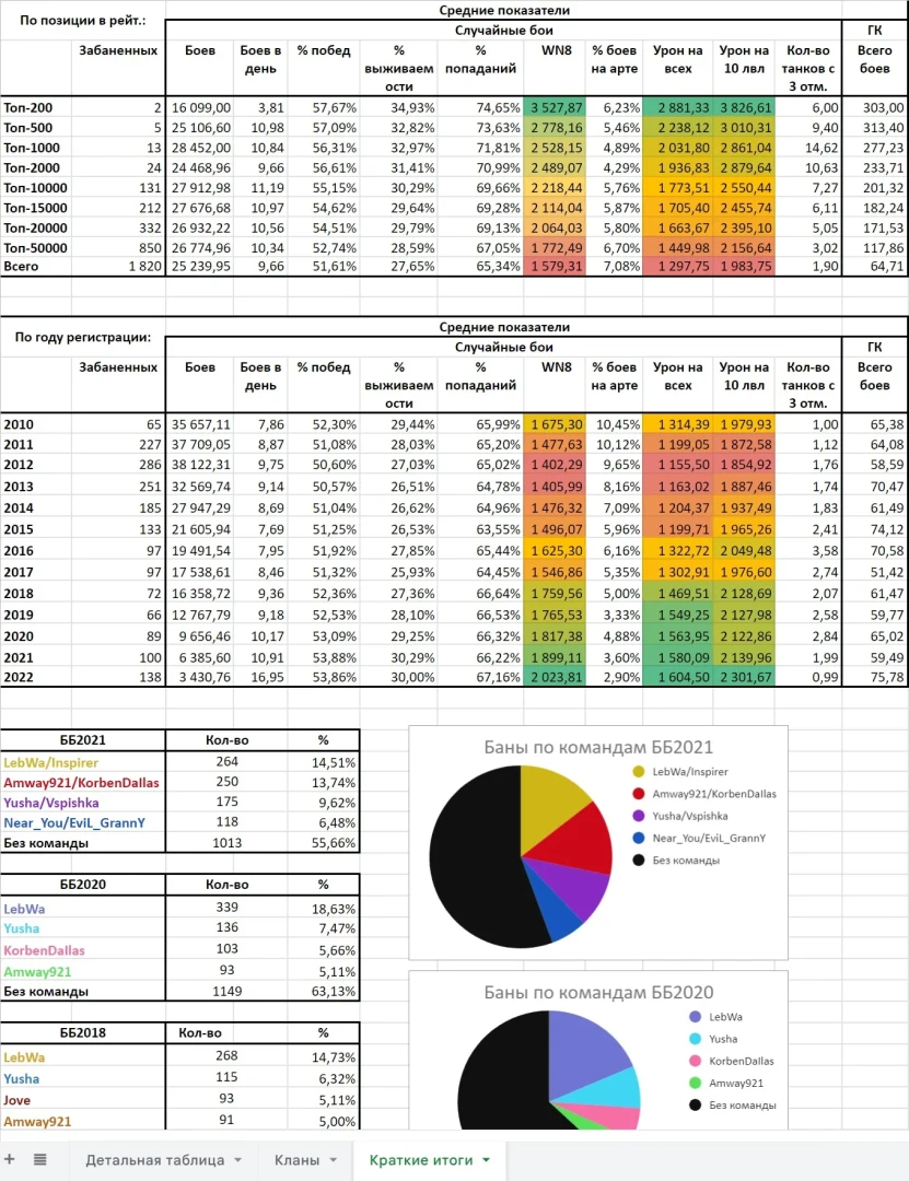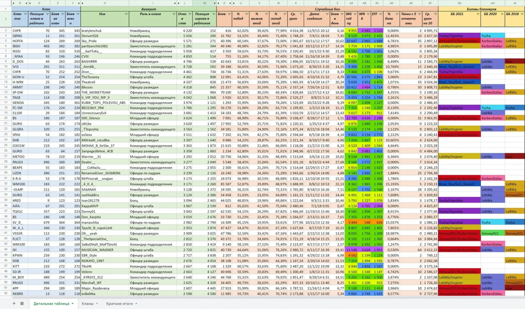 Традиционный список можно посмотреть онлайн в Google Docs (там 3 листа: Детальная таблица, Кланы и Краткие итоги): https://bit.ly/3JAs8qm