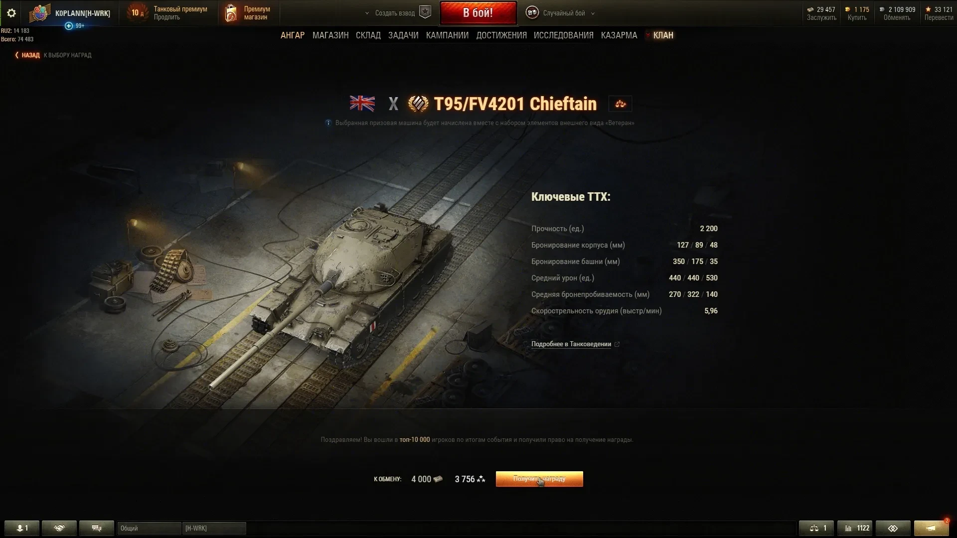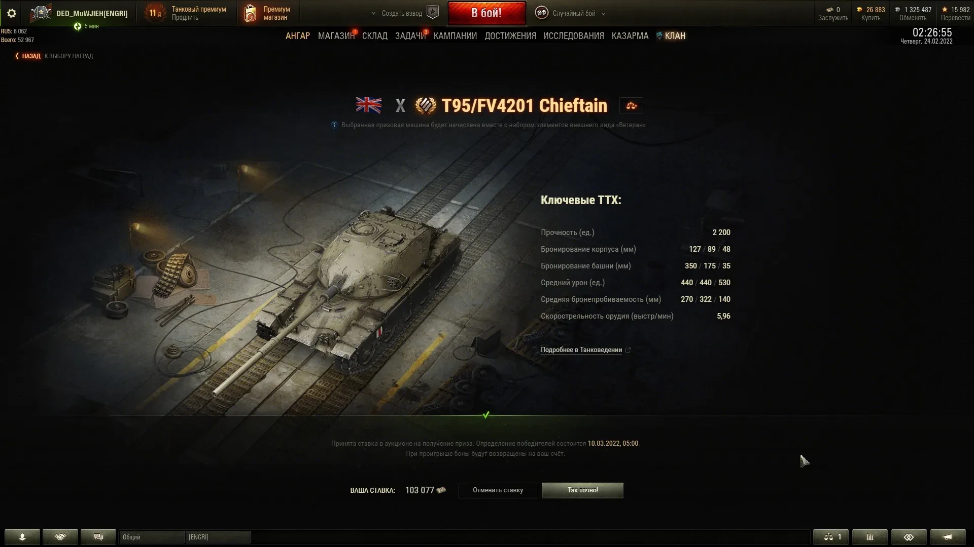 Итог: если прям так хочется это чифтейн ( остальные танки даже не рассматриваю ) то ставка не ниже 70 к бон ( это лично мое мнение )