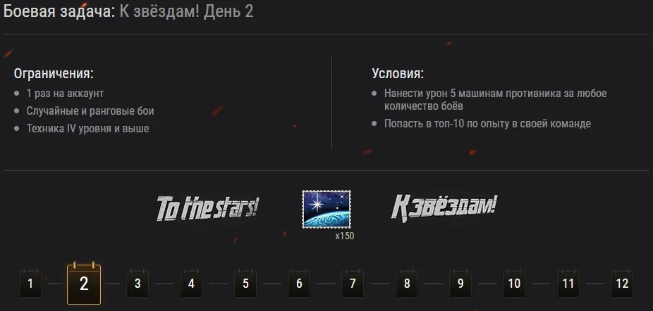 Чтобы отметить эту знаменательную дату, мы подготовили для вас специальное игровое событие «К звёздам!». Здесь не будет сверхсложных боевых задач, но будет необходимость сплотиться для полного погружения в атмосферу события.