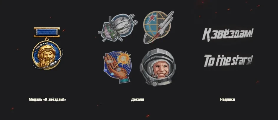 При прохождении игрового события вас ждут четыре новые ретрофутуристических декали, надпись «К звёздам!» и медаль с изображением Юрия Гагарина.