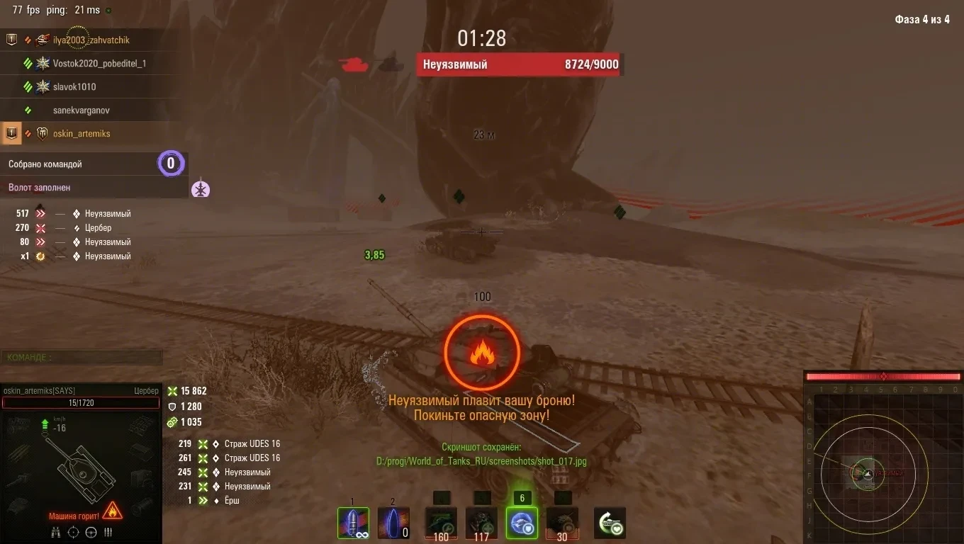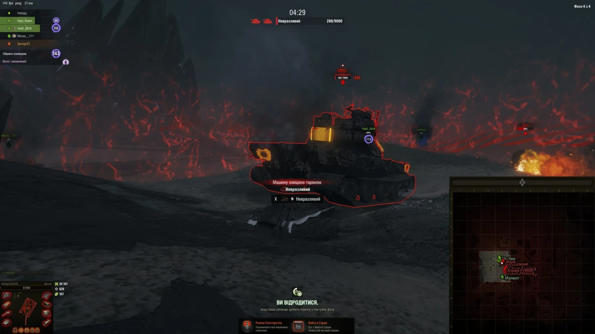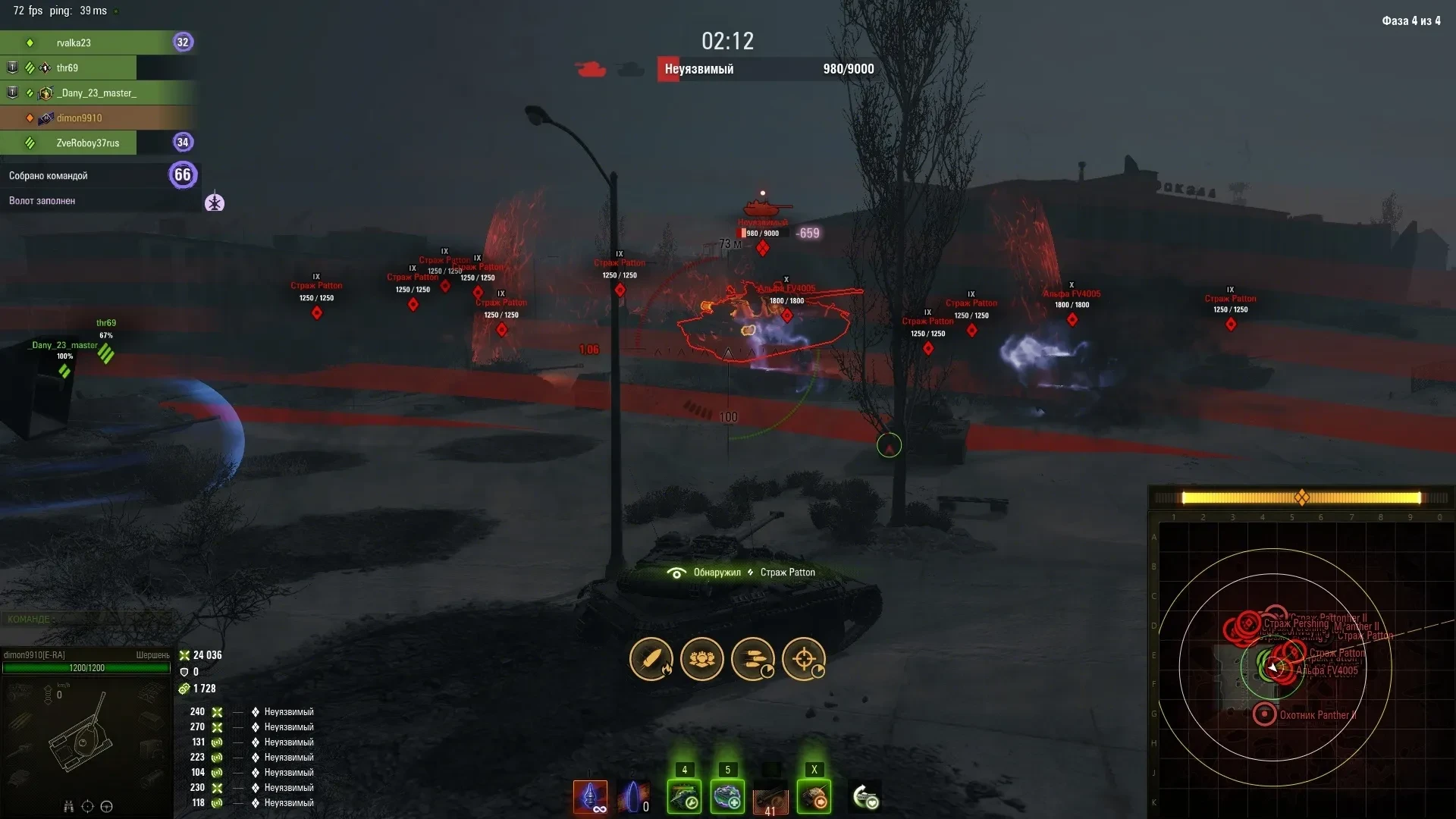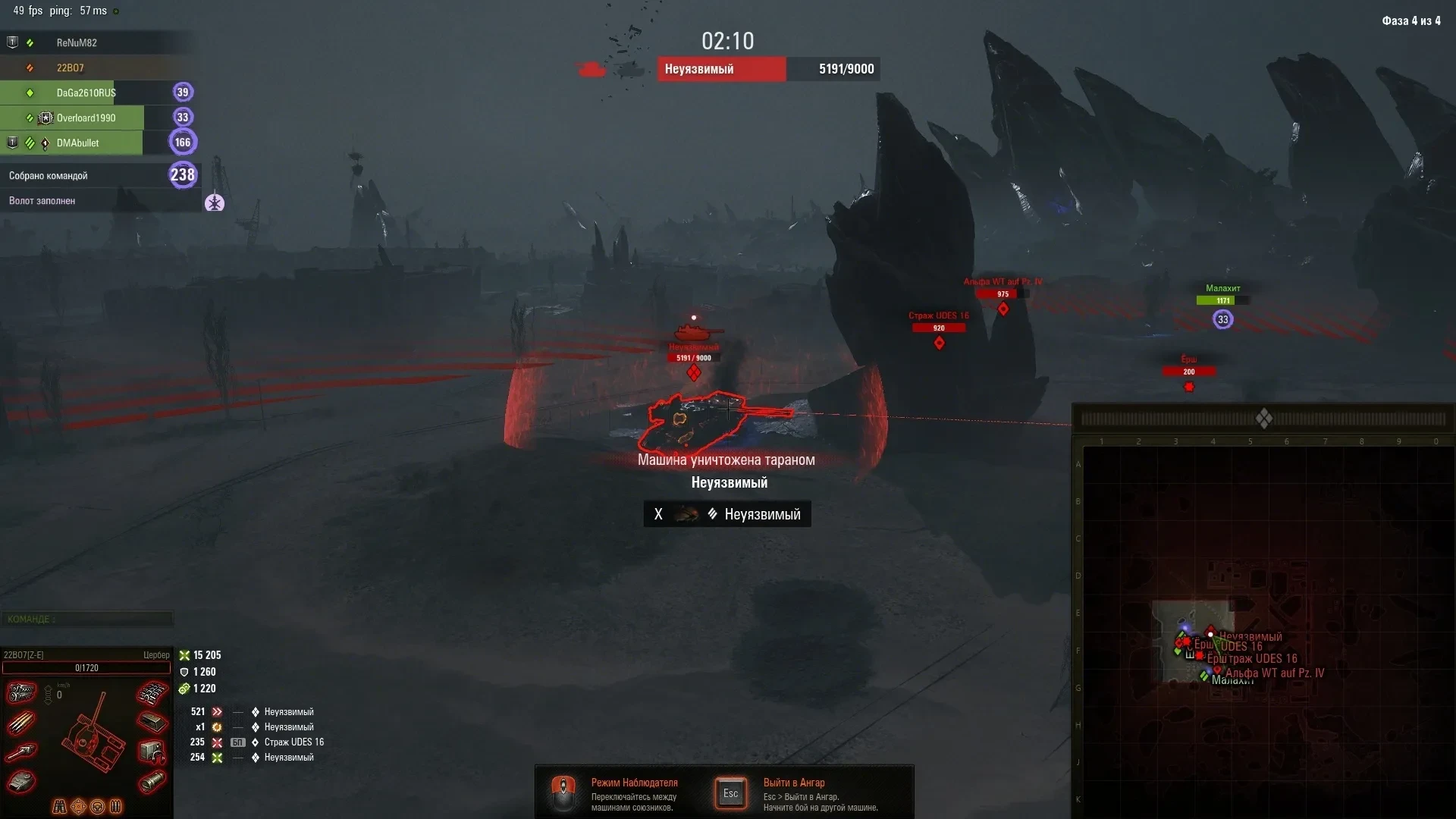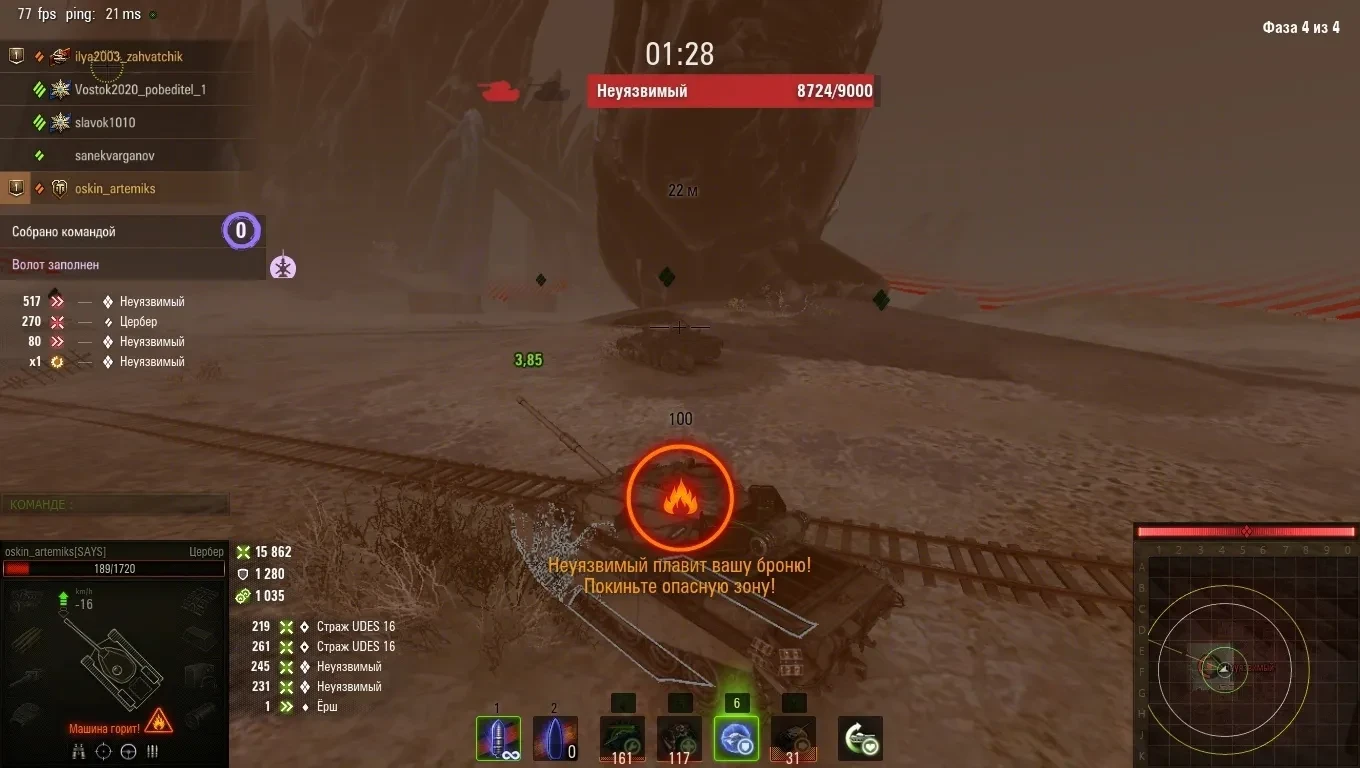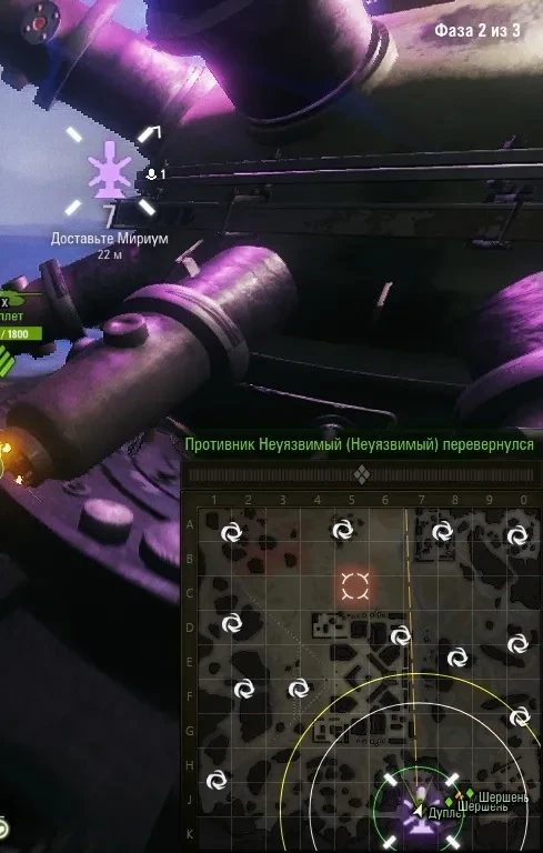 Ещё 1 интересный баг. В 4 фазе когда появляется босс Неуязвимый, он может появится как невидимый на поле, но на миникарте будет видно его последнее местоположение. При этом он как обычно уничтожает союзников, плавит танки и индикатор его присутствия тоже горит.