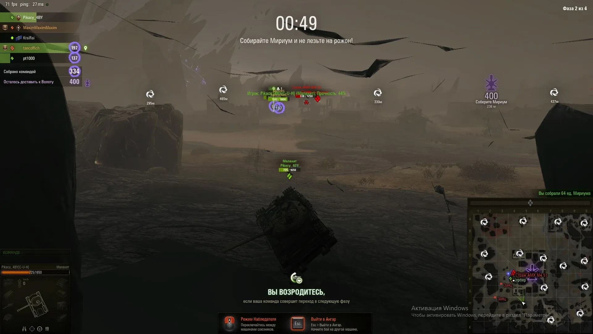 Заполнили волот на третьей фазе, но дальше ничего не последовало. Бессмысленно катались по карте, враги не спавнились. Все слились — бой не кончался еще около 2 минут. Затем все таки победу засчитало... Скрин 7, скрин 8.