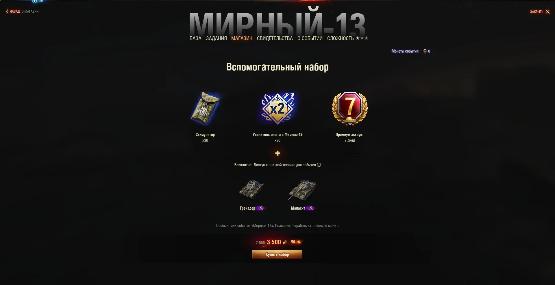 Донат в PvE-режиме «Мирный-13» World of Tanks — всё за голду