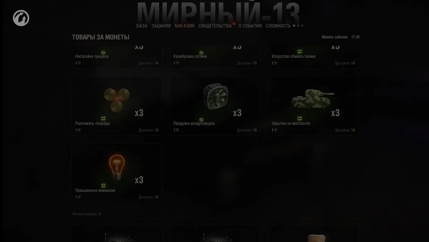 - Личные резервы — 2 вида: на серебро/на боевой опыт.