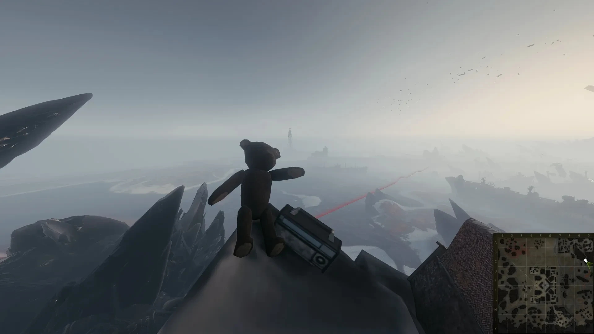 На одноимённой карте «Мирный-13» в квадрате C0 на одной из загадочных скал можно обнаружить вот такую картину: диван, мишка с поднятой рукой и магнитофон.