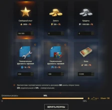 Итог: общее количество ресурсов для получения танка можно снизить дополнительно на 22%, т.е. до 312 000 свободного опыта.