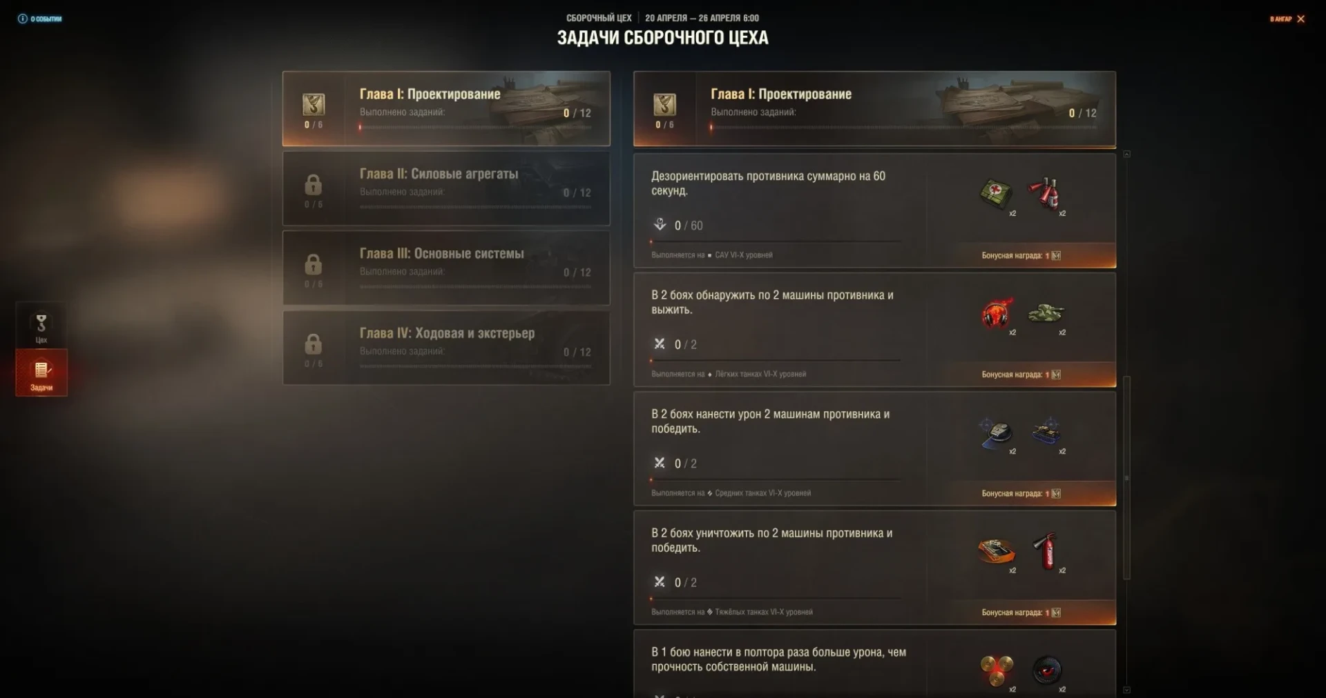 Событие состоит из 4 Глав. В рамках каждой из них вы можете получить за выполнение задач до 6 жетонов.