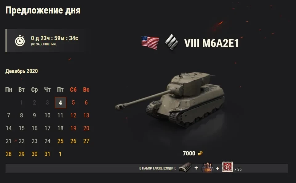 - С 4 декабря 09:00 (МСК) до 5 декабря 09:00 (МСК) премиум танк дня — M6A2E1.