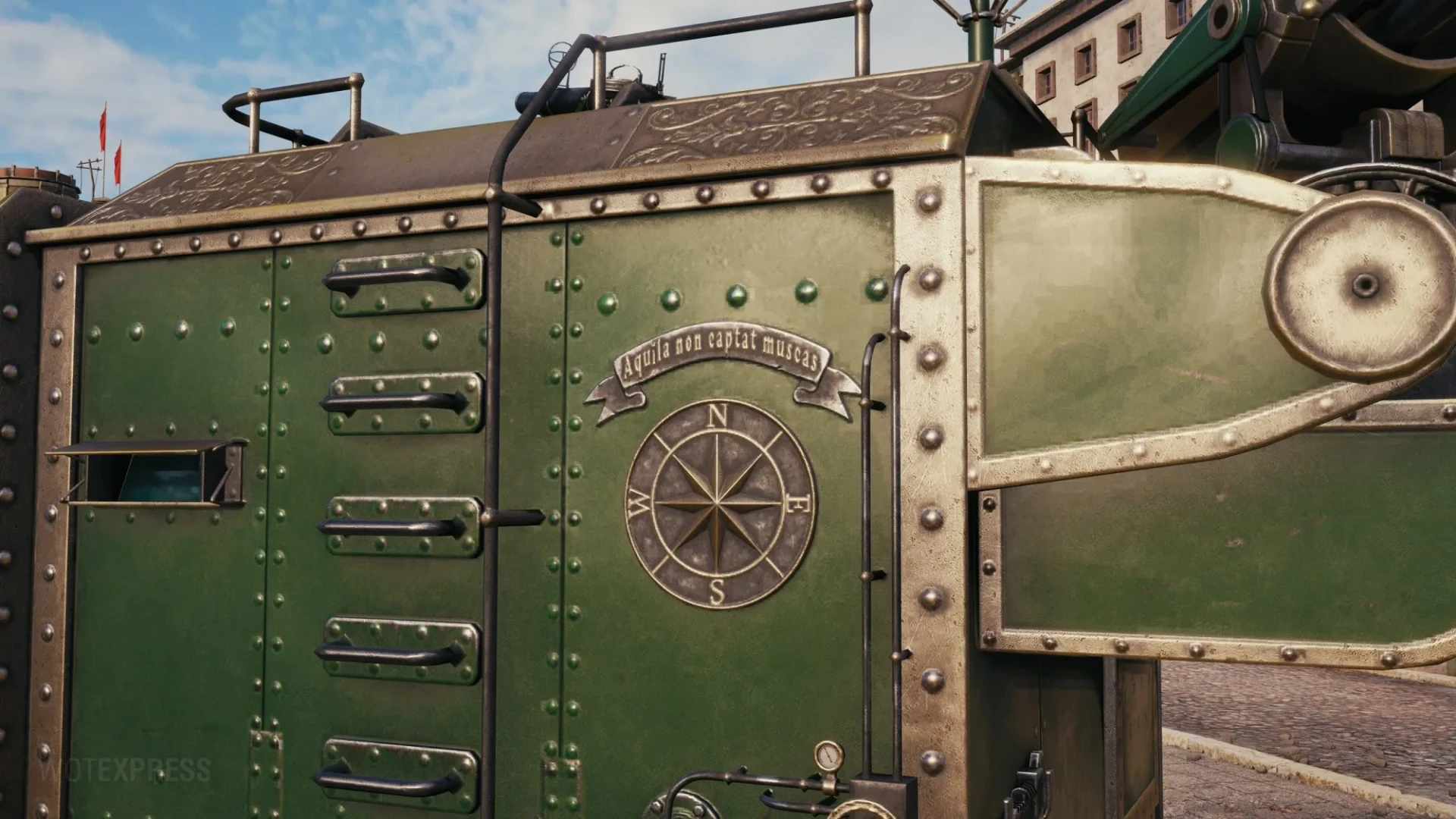 Классная стилизация под паровой локкомотив. Мелкие детали и символика, здорово.