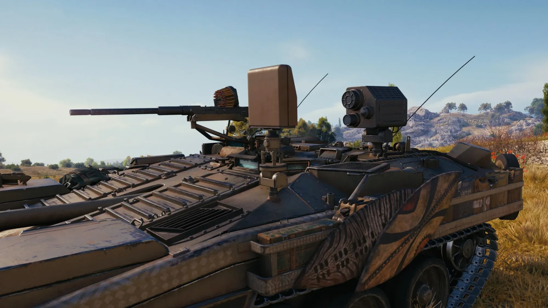 Второй 3D-стиль для данного танка. На этот раз у него есть движущиеся элементы на корпусе. В осадном режиме выдвигается дальномер, а антенна начинает сканировать местность.