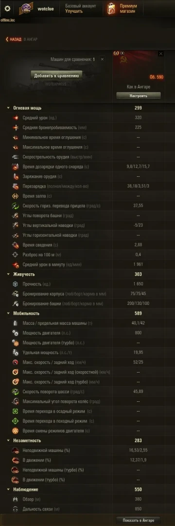 Так как Об. 590 с механикой, выделим все огневые показатели отдельно: