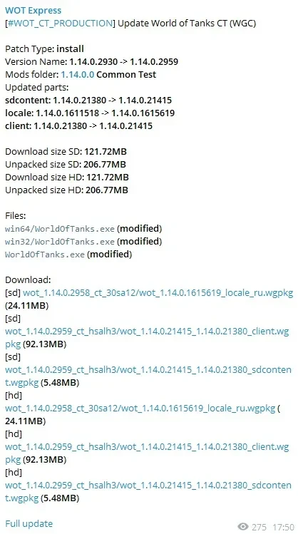 Второй Общий тест 1.14 WoT уже обновляется, можете скачивать. Сами серваки откроются примерно через час.