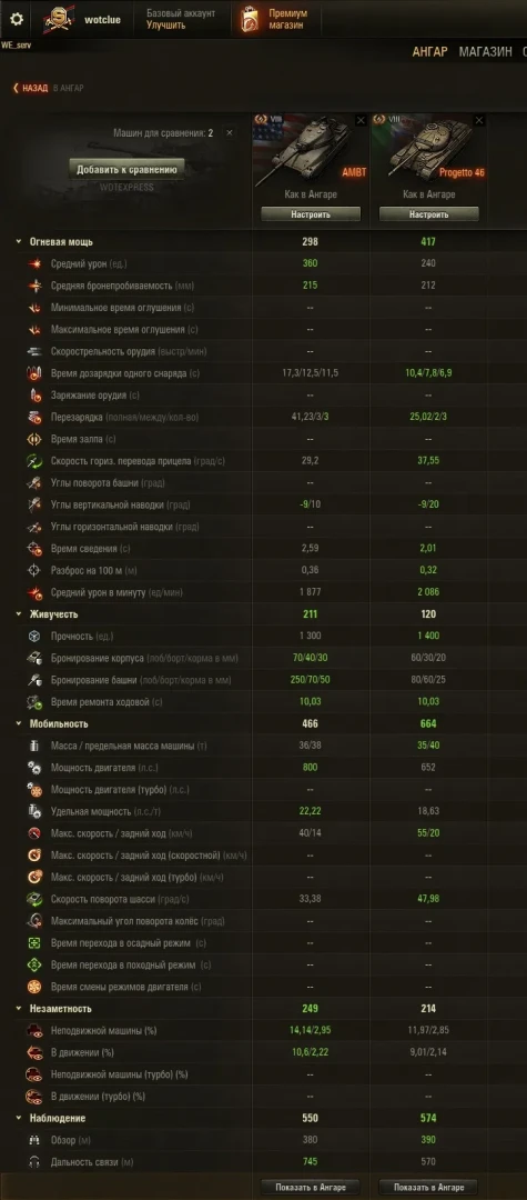 Так как AMBTс механикой, выделим все его огневые показатели отдельно:
