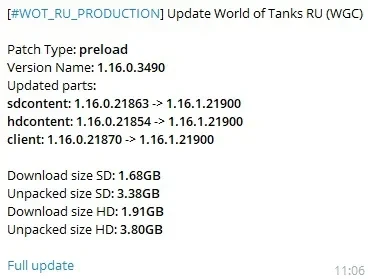 Обновление 1.16.1: предварительная загрузка в World of Tanks