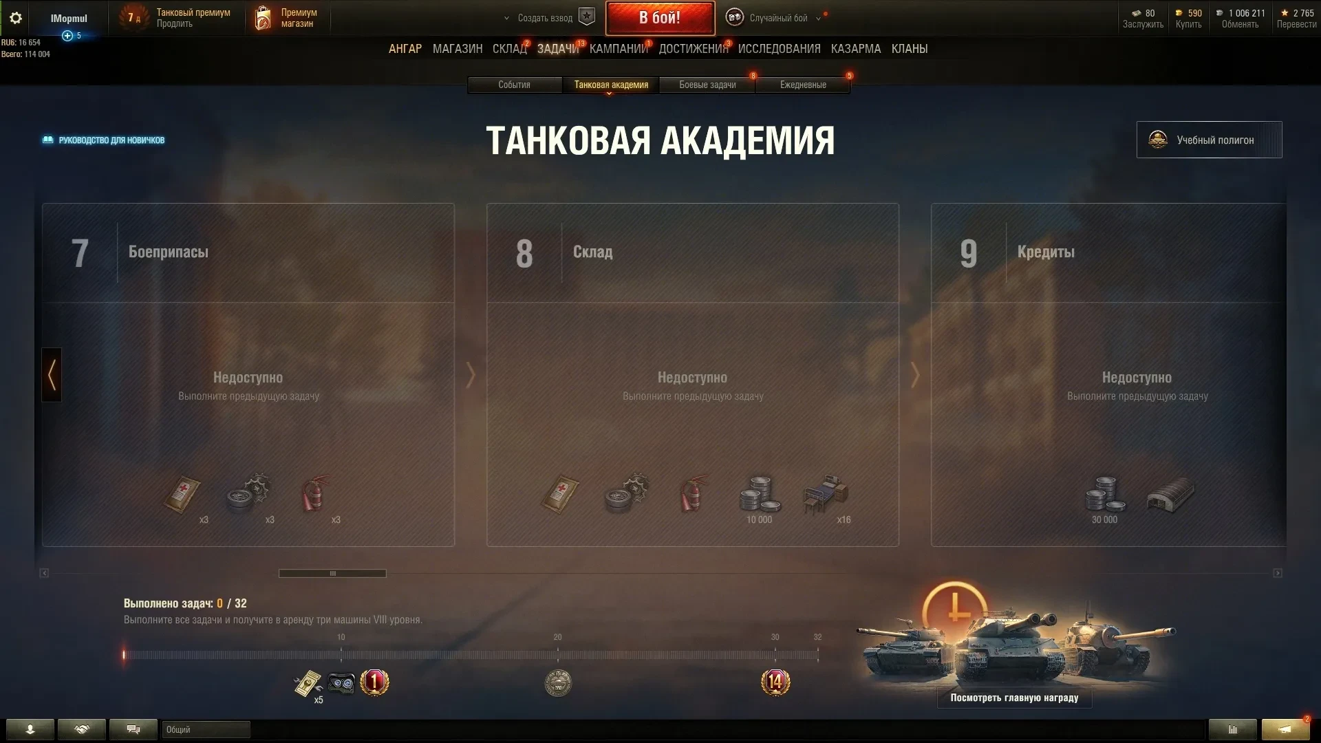 Танковая академия: это цепочка обучающих задач для новых игроков.