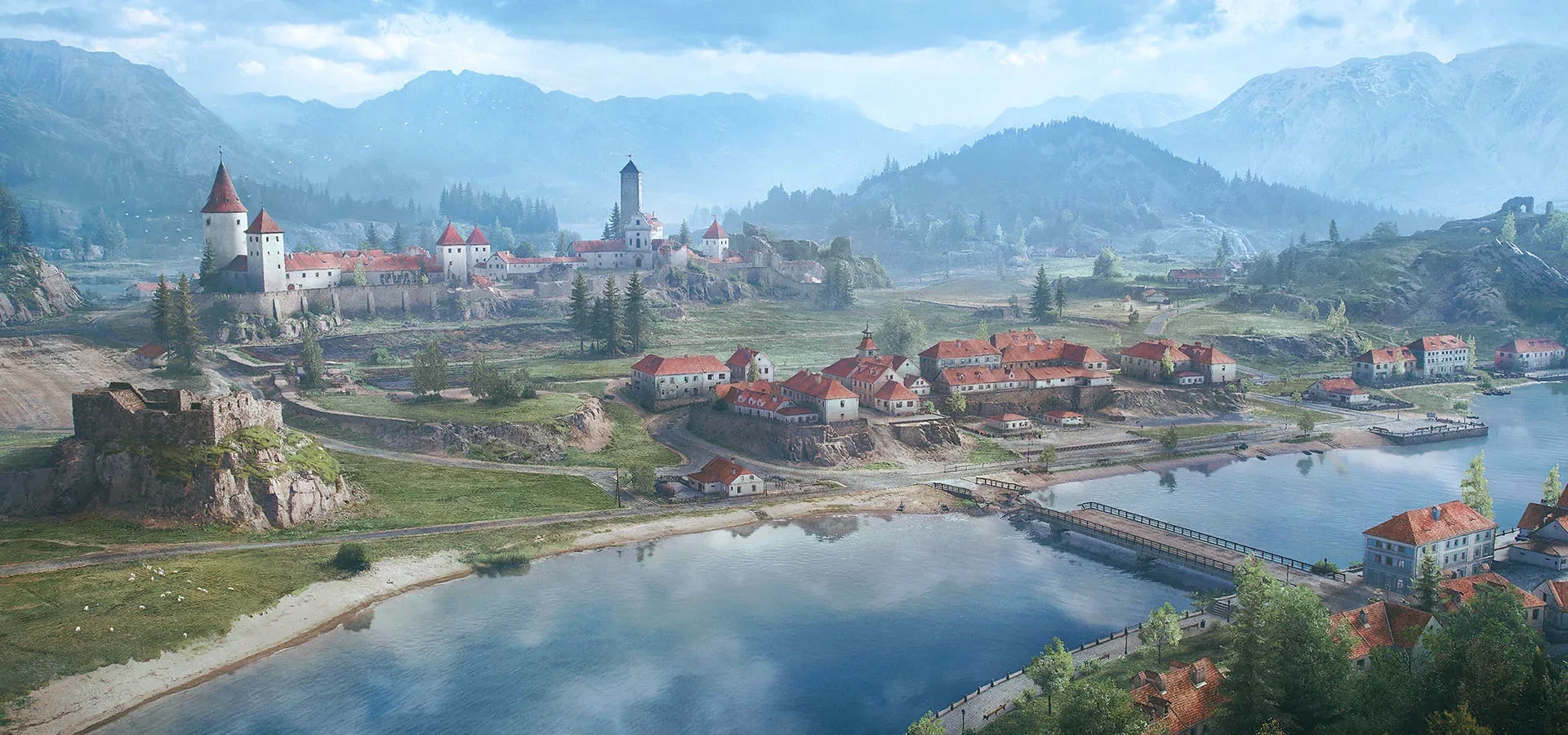 В центре — большой оборонительный город со следами битвы. Вокруг поля, река и живописная природа. За этими красочными пейзажами можно увидеть поле боя с большим разнообразием тактик и позиций, где каждый найдёт своё место на любом типе техники.