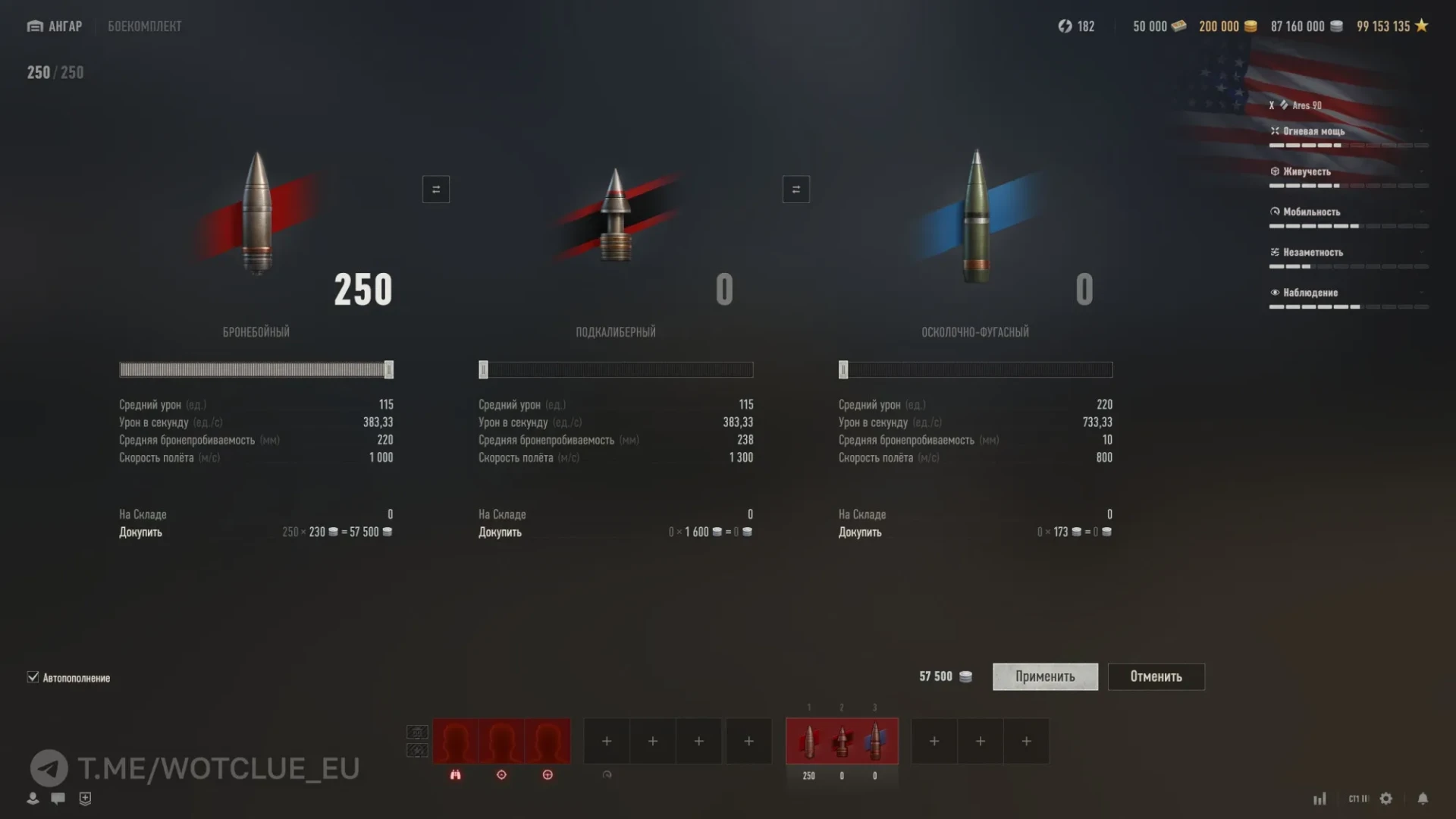 - Средняя бронепробиваемость Бронебойным снарядом: 220