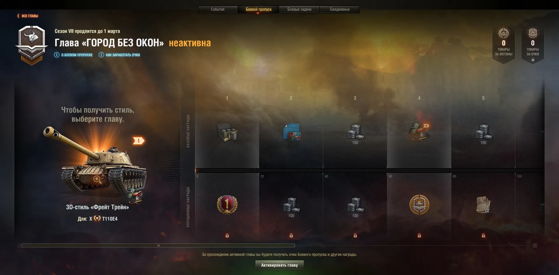 - Переработана структура прогрессии Боевого пропуска. Теперь можно выбрать, какую главу проходить, а также ставить прогресс на паузу и переключаться на прохождение другой. Прогрессия каждой главы представлена в тестовом варианте.