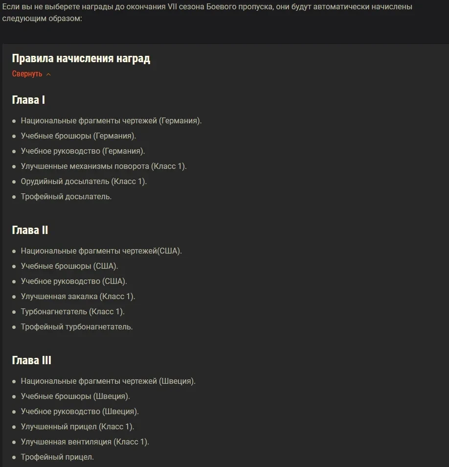 Если вы не заберёте свои награды с прогрессии БП-7 до окончания 7 сезона, за вас их автоматически выберет система согласно правилам (см. скрин 6). Поэтому ВЫБЕРЕТЕ ИХ САМИ!