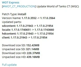2-й Общий тест обновления 1.17 WOT уже обновляется, можете скачивать.