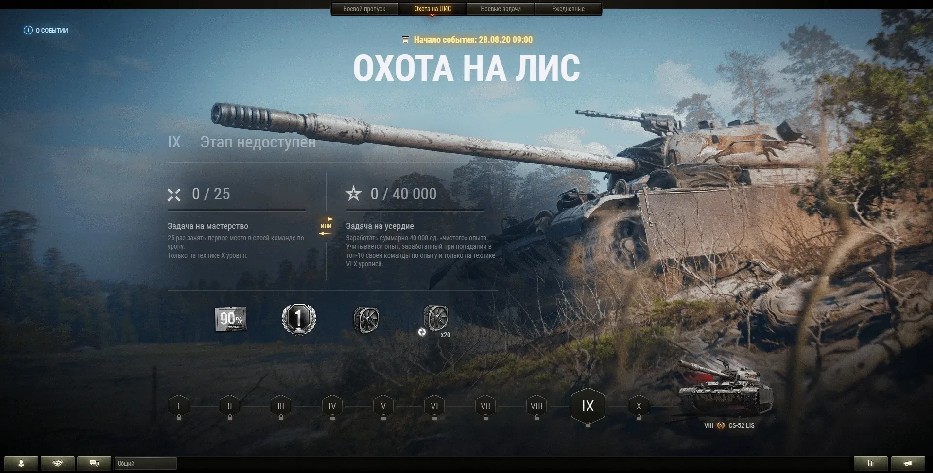 Ну и стандартный список Боевых задач и наград каждой из клиента игры World of Tanks, «Охота на ЛИС».