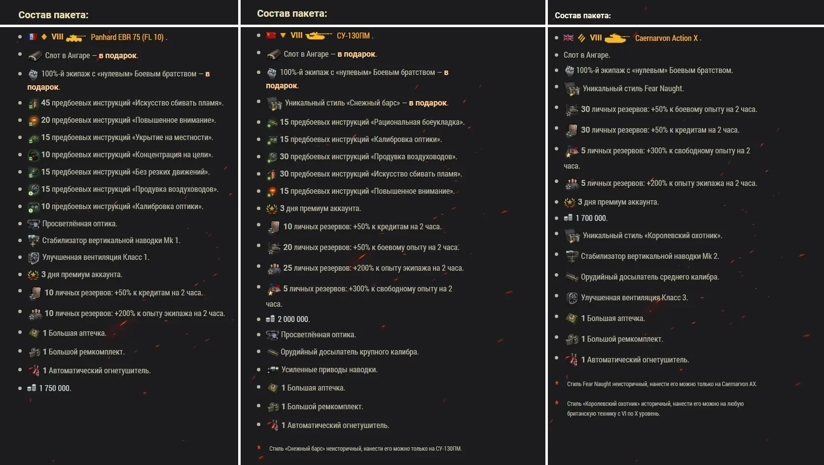 Кстати, стиля в пакетах нет и это самый дешёвый танк по стоимости в голде (7000 gold.), + серы меньше и резервов меньше, а вот цена осталась почему-то прежняя. В этот раз насыпали меньше всего за туже цену, если смотреть все прошлые Охоты. Сравнить все награды со всеми прошлыми «марафонами»: ссылка.