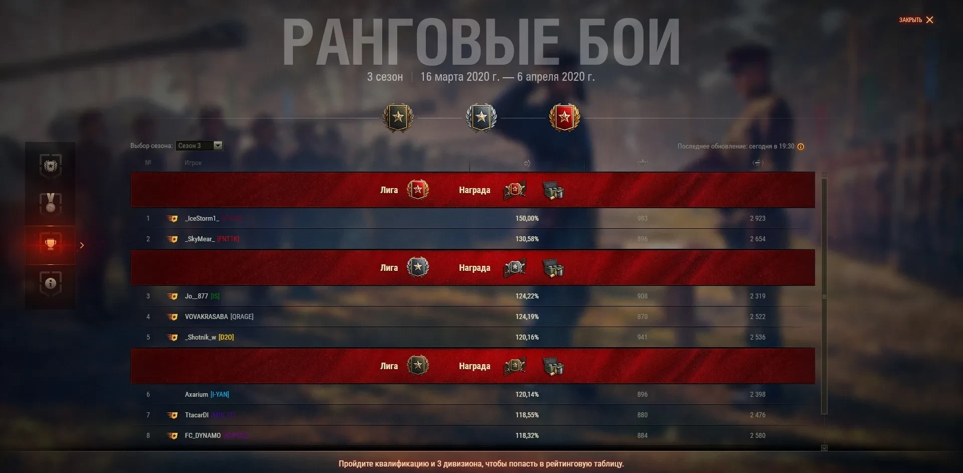 Первые игроки завершившие третий сезон Ранговых боёв World of Tanks