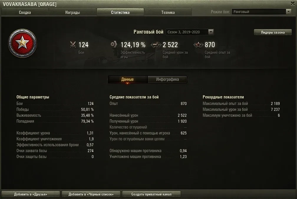 Первым из стримеров (4 общее место) стал, конечно же, профессионал своего дела, терминатор VOVAKRASABA [QRAGE]. Эффективность получения шевронов 124%, 124 боя и средний урон 2.522 едениц. Немного ему не хватило до 1 места + были подгорания сегодня от рандома.