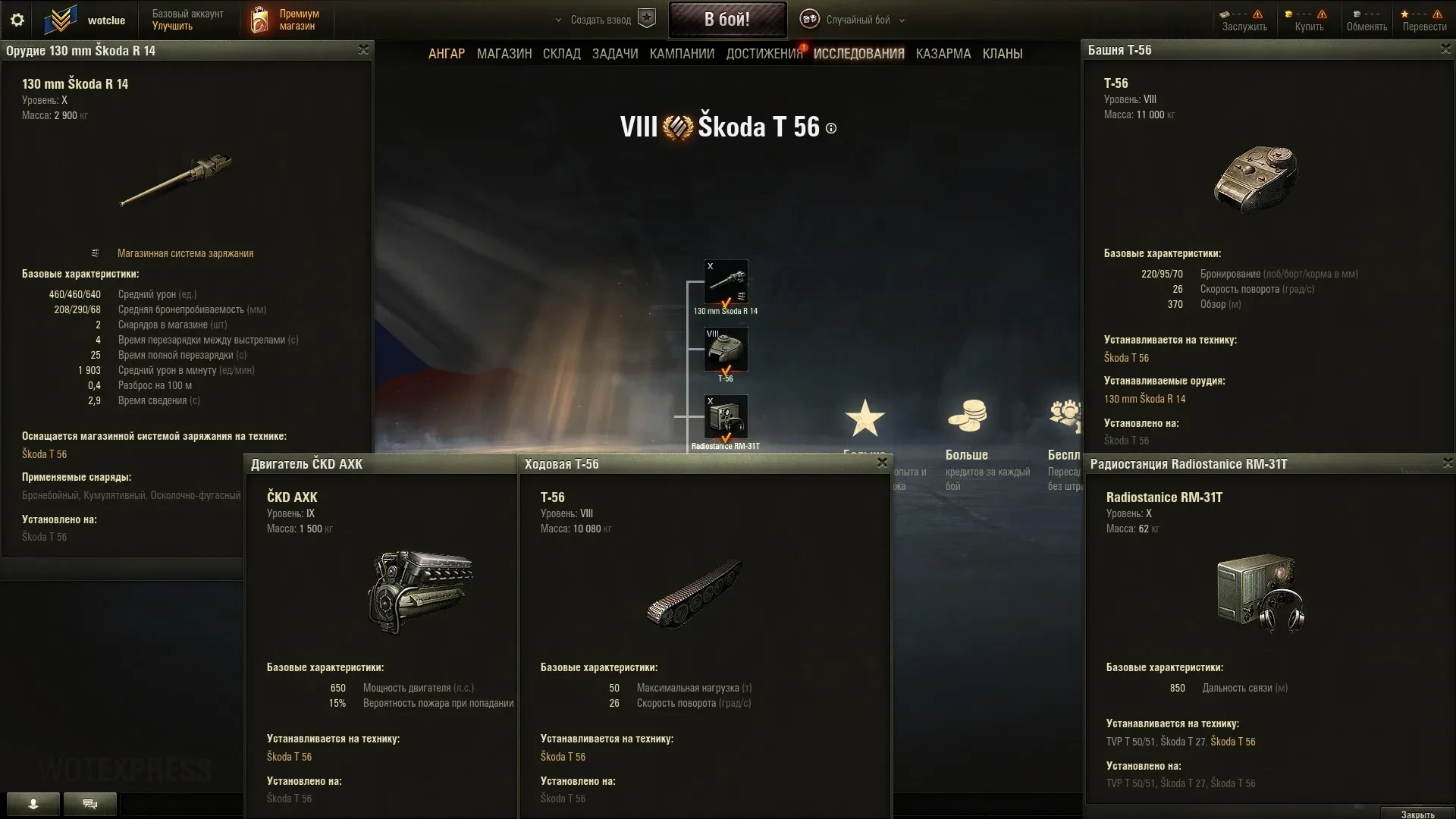 Škoda T 56 (Чехословакия, ТТ-8, прем, барабан на 2 снаряда) вышел сегодня днём для тестирования на супертест WOT. Это первый высокоуровневый тяж Чехословакии, который имеет черты будущей ветки. Само тестирование новой подветки на ST начнётся уже совсем скоро. Прем должен выйти раньше релиза прокачиваемых танков.