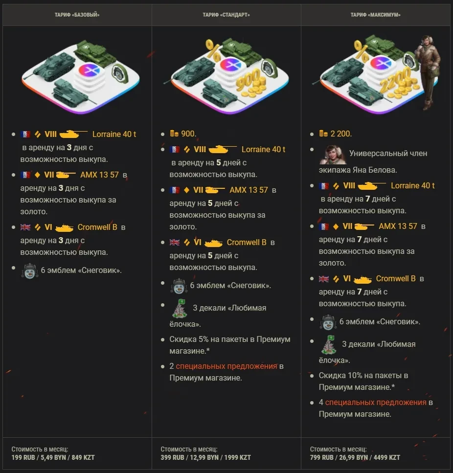 - игровое золото, арендные премиум танки и элементы внешнего вида;