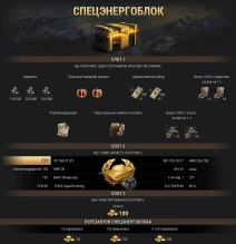 Во время игрового события в Премиум магазине будут доступны особые энергоблоки — Спецэнергоблоки. Вместо элемента коллекции они могут содержать одну из шестнадцати премиум машин VIII уровня, в том числе T77 (США, ТТ-8, прем, барабан на 3 снаряда):, новый американский тяжёлый танк с магазинной системой заряжания. Кроме того, Спецэнергоблоки содержат большое количество ценного игрового имущества.