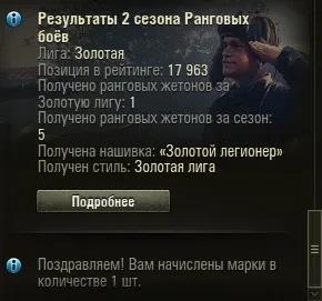 С 19:03 (МСК) начали приходить награды за 2 сезон Ранговых боёв 2021/2022. Ровно через неделю после окончания.