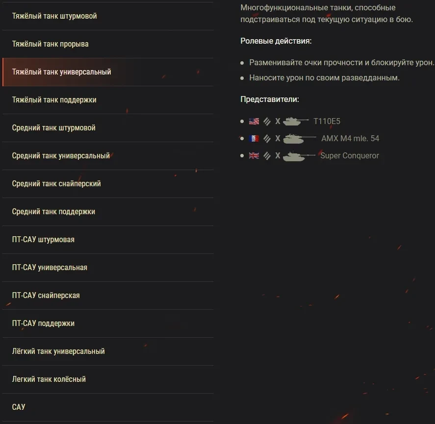 В рамках сезона X также добавлена одна новая роль — универсальный тяжёлый танк. Она будет присвоена таким машинам как Super Conqueror или T110E5. Для эффективного выполнения своей роли эти машины должны блокировать урон, «разменивать» запас прочности, а также наносить урон технике противника в радиусе своего обзора после её обнаружения.