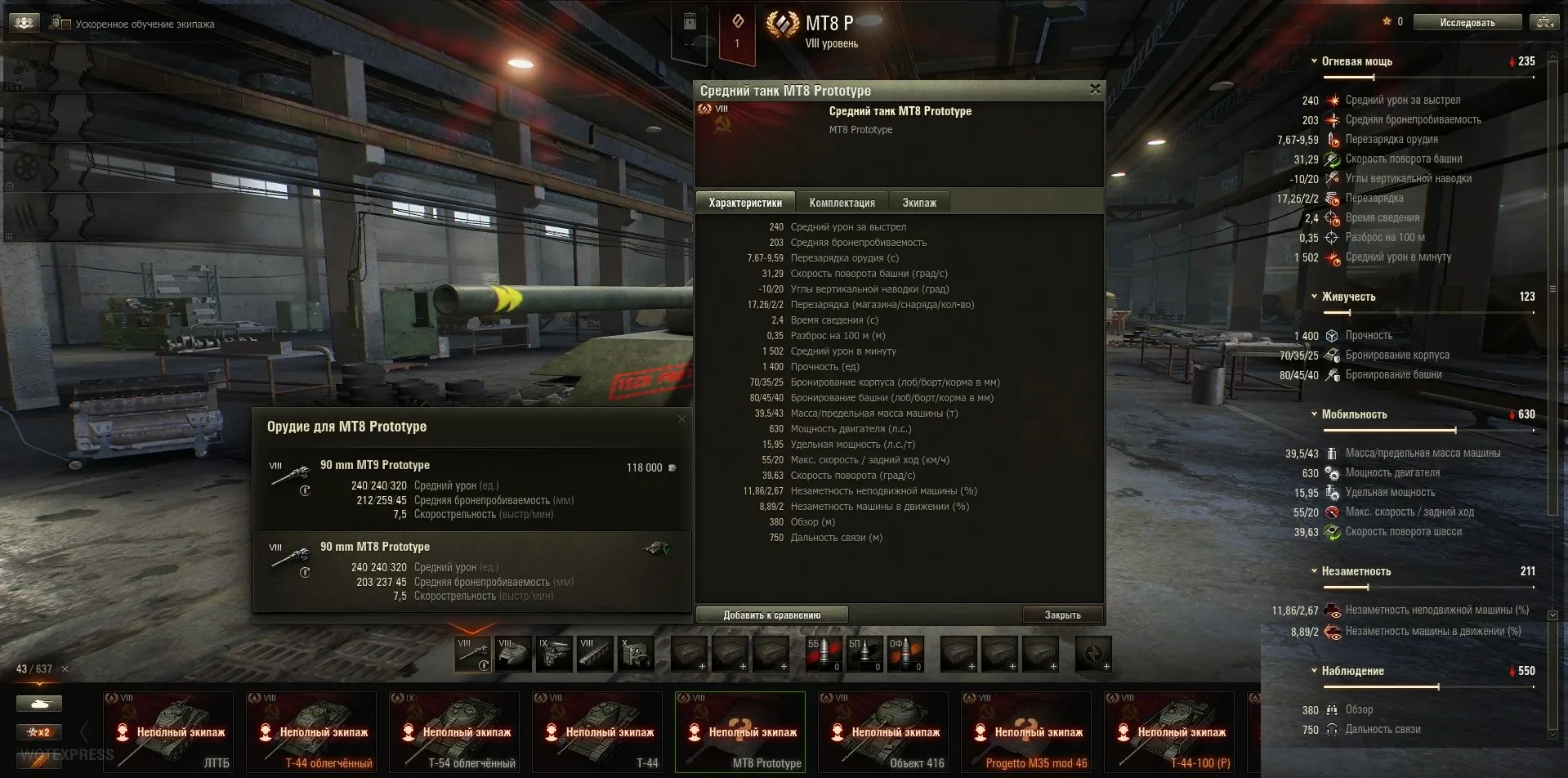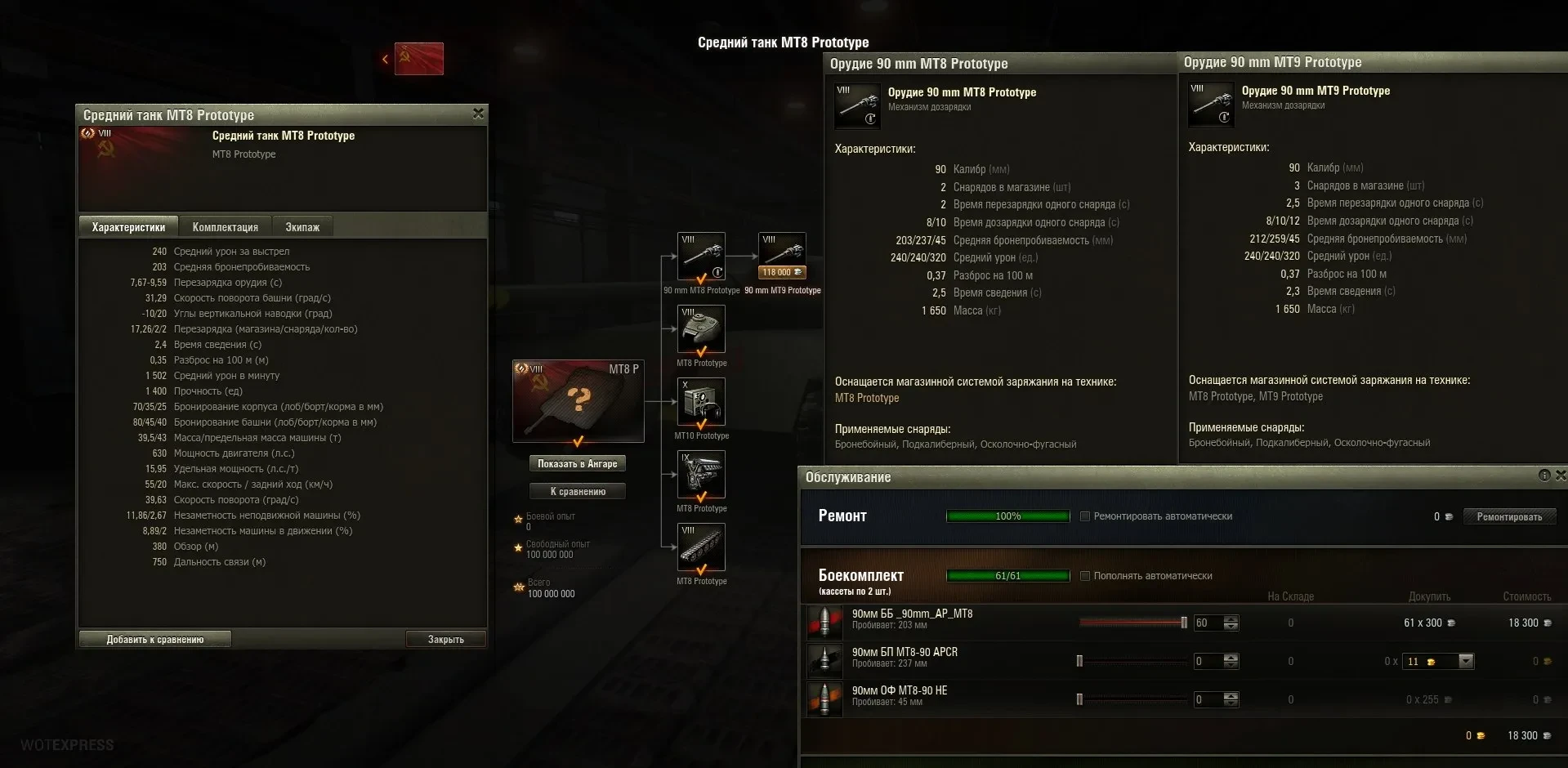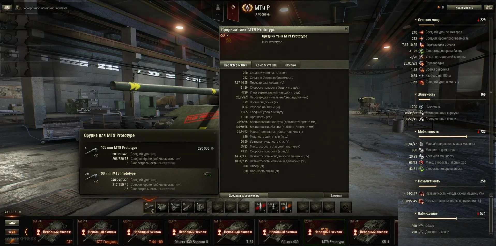 MT9 Prototype (СТ-9, Италия, автолоудер, прокачиваемый, прототип) — экипаж 4 человека, на выбор идёт 2 орудия, 3 снаряда в магазине. На ДМП обращать внимание при автолоудере не очень будет правильно. Обратите свой взор на два орудия при изучении ТТХ.
