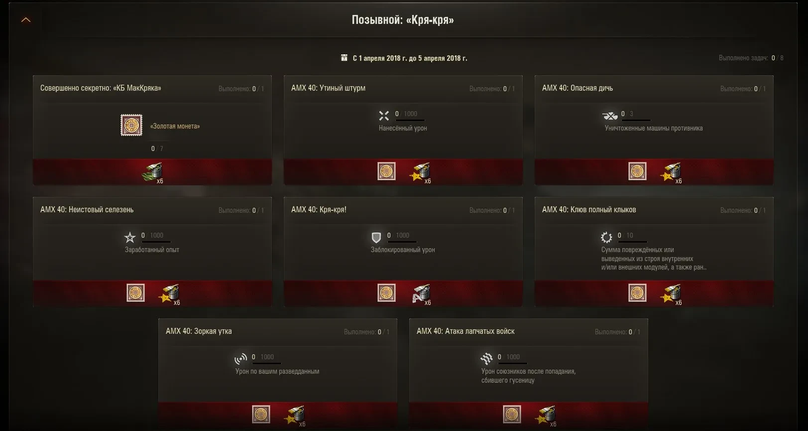 Боевые задачи «Позывной: Кря-Кря» WoT.