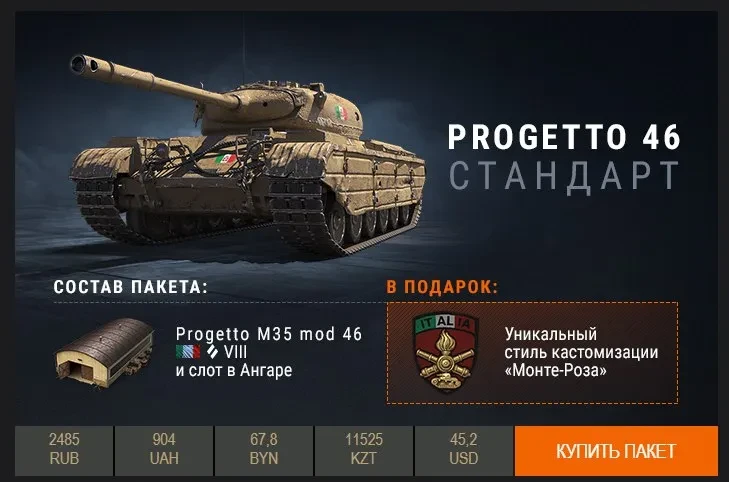 * Наборы с Progetto 46 доступны в Премиум магазине с 6 апреля 9:00 (МСК) по 20 апреля 9:00 (МСК).