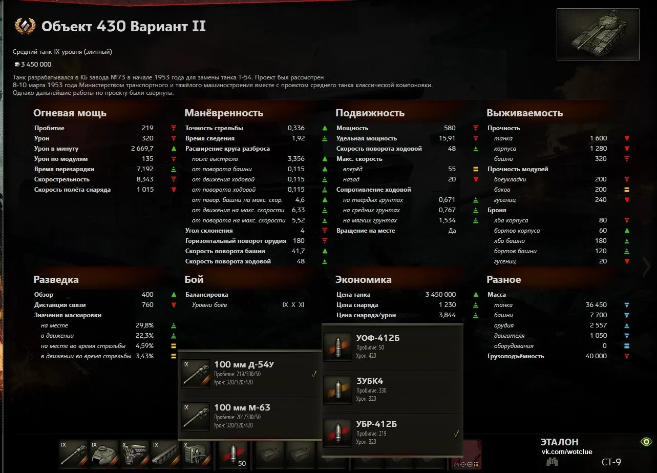 Ребаланс для танка Объект 430 Вариант II (СТ-9, СССР, прокачиваемый):