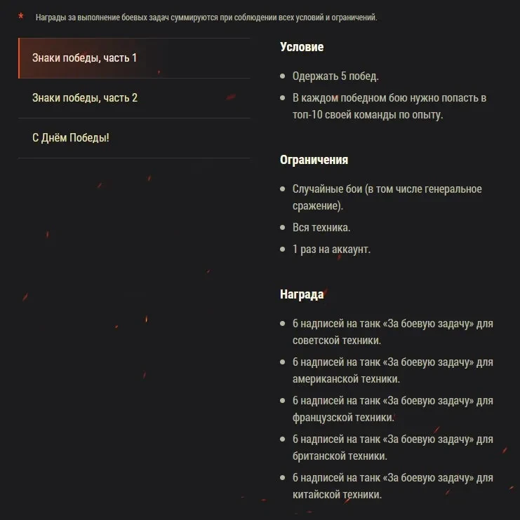 Боевые задачи: (можно получить 1 день премиум аккаунта)