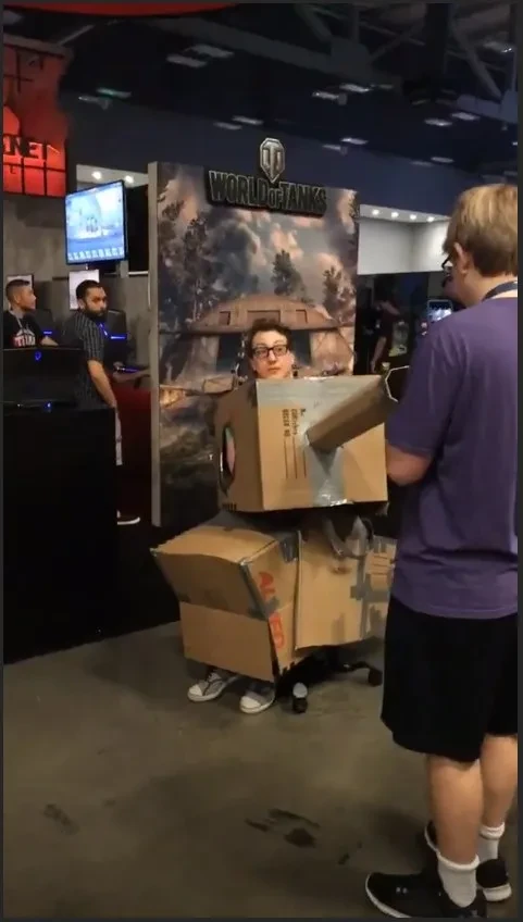 На фото: уникальный косплей неизвестного нам танка, 2 июня, стенд Wargaming на DreamHack Austin (Техас) 2018.